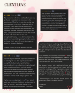 Breath is life, and through breathwork with Samantha-Jayne Love, you reconnect to your natural power and inner calm. Using conscious breathing techniques, she guides you into an altered state where release, healing, and transformation naturally unfold. Old patterns, stress, and emotional blocks are gently exhaled, making space for clarity, peace, and expansion. Each session becomes a portal into the body’s wisdom, allowing deeper connection to your heart, soul, and authentic self. Breathwork is both grounding and elevating, a practice that awakens presence, embodiment, and liberation. With Samantha-Jayne’s guidance, breath becomes medicine, restoring balance and igniting your inner vitality.